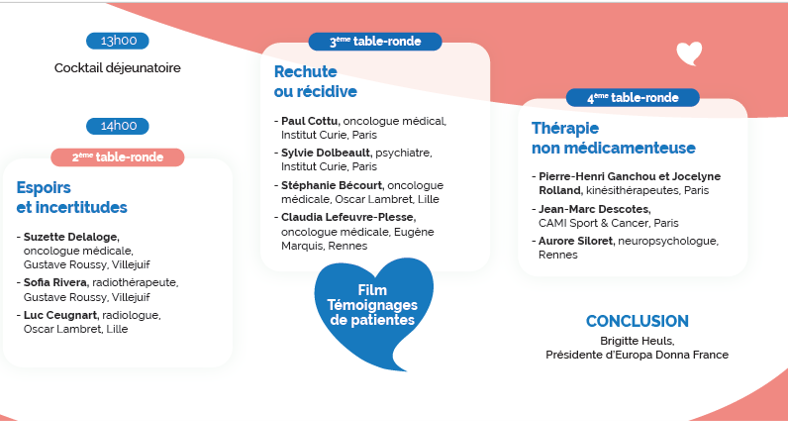 • Rechute ou récidive – avec des oncologues et psychiatres de l’Institut Curie, d’Eugène Marquis et d’Oscar Lambret.