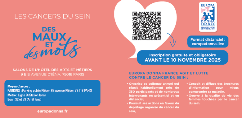 Europa Donna France vous invite à participer à son 27ᵉ colloque annuel consacré aux cancers du sein,