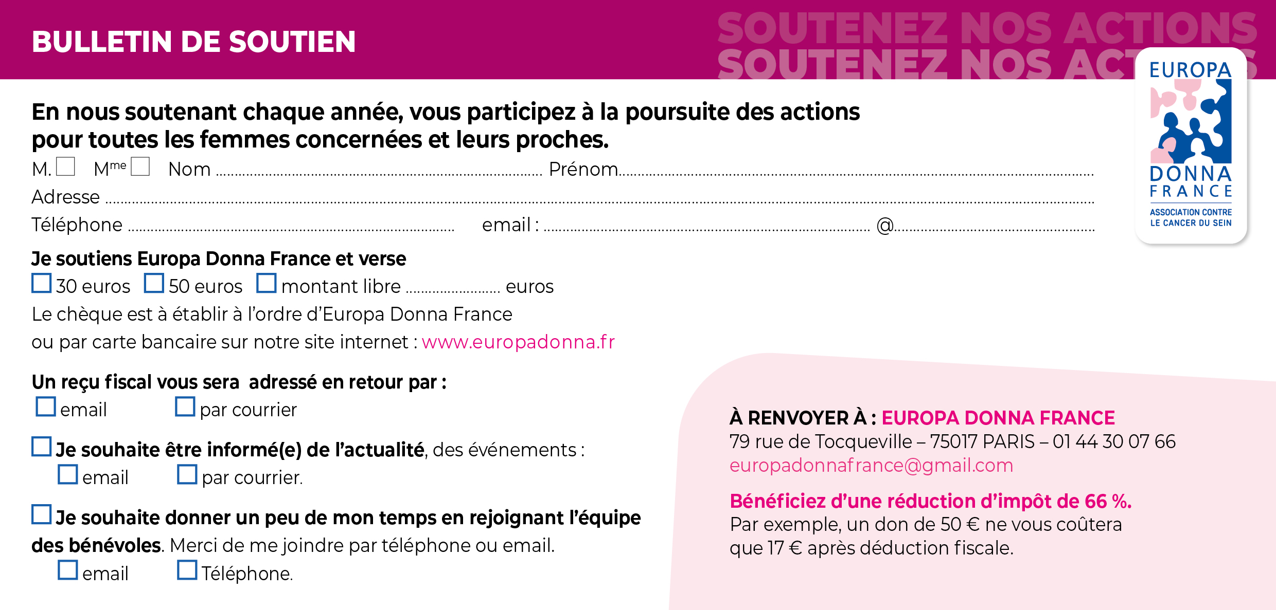 Europa Donna France fait appel à votre générosité !